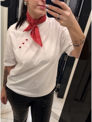T-shirt 100% cotone taglio classico, morbida e lunga.
